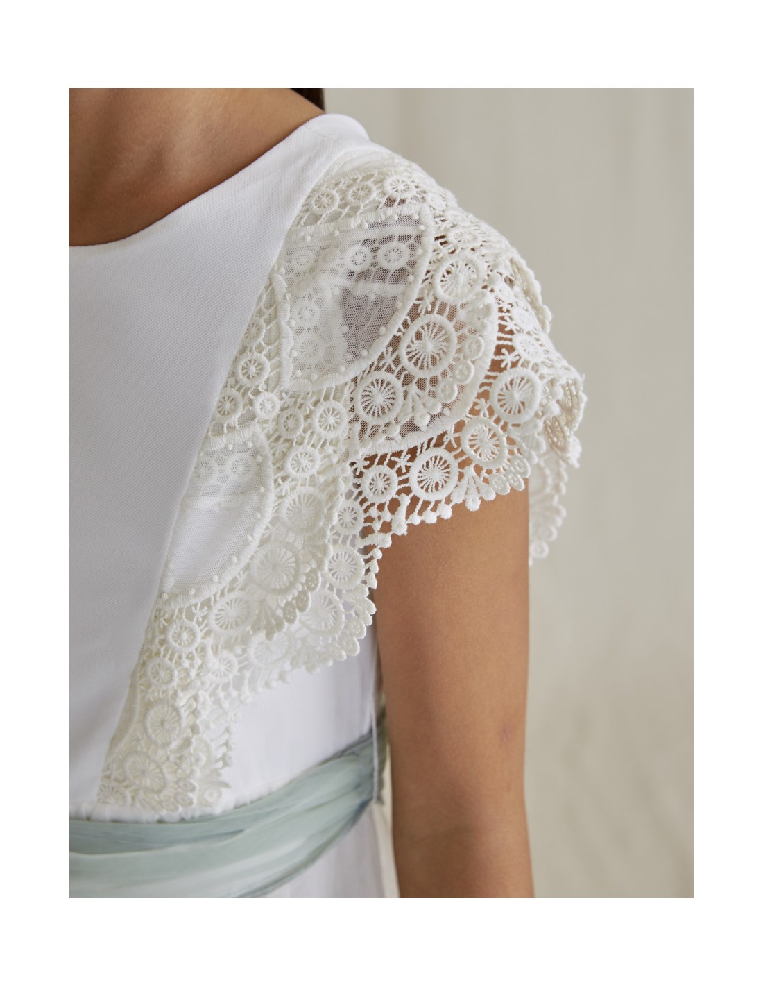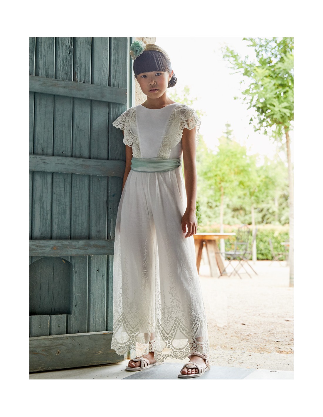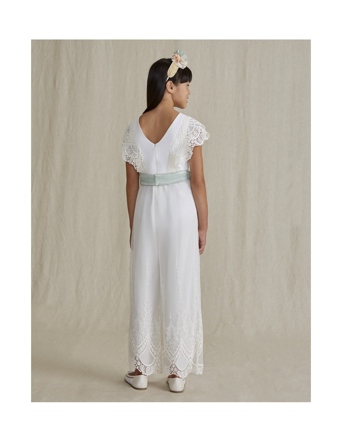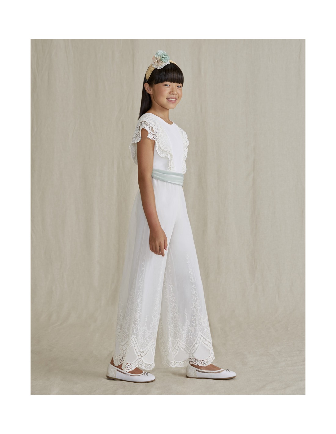 •Salopetă frumoasă din tul brodat cu brau din aceeași țesătură.